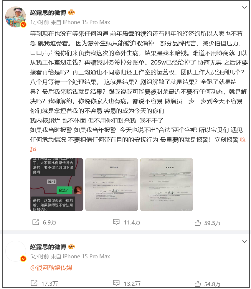 今日下午,趙露思還曾發佈微博“@銀河酷娛傳媒 ”,除此之外並無其他正文。