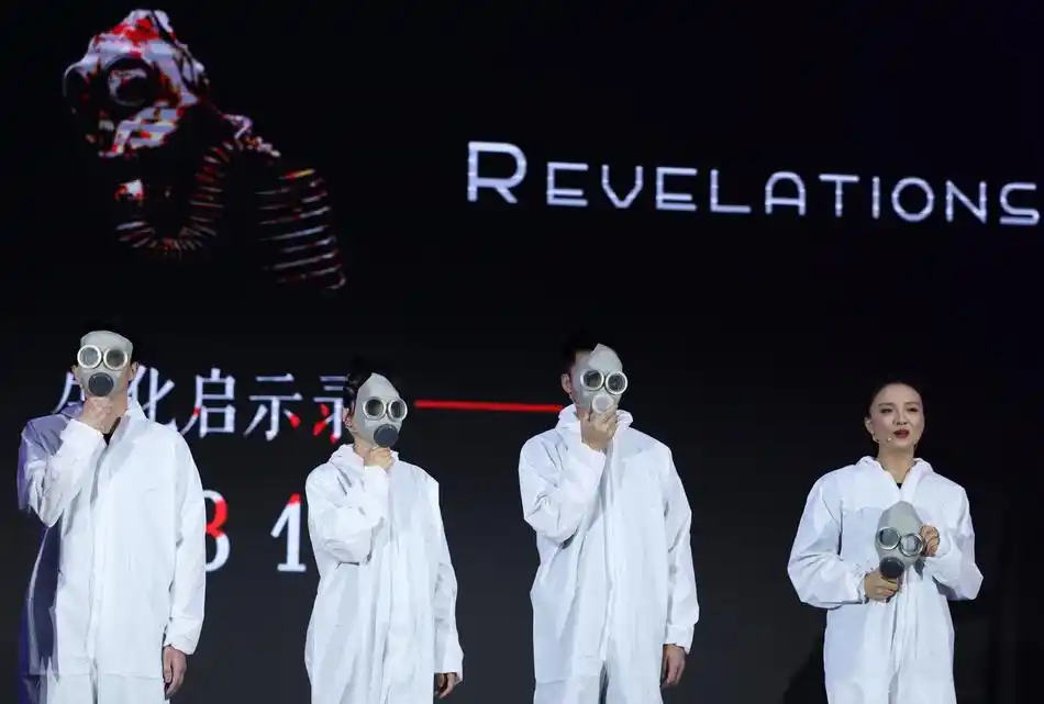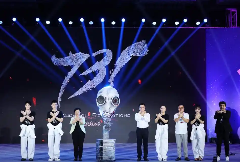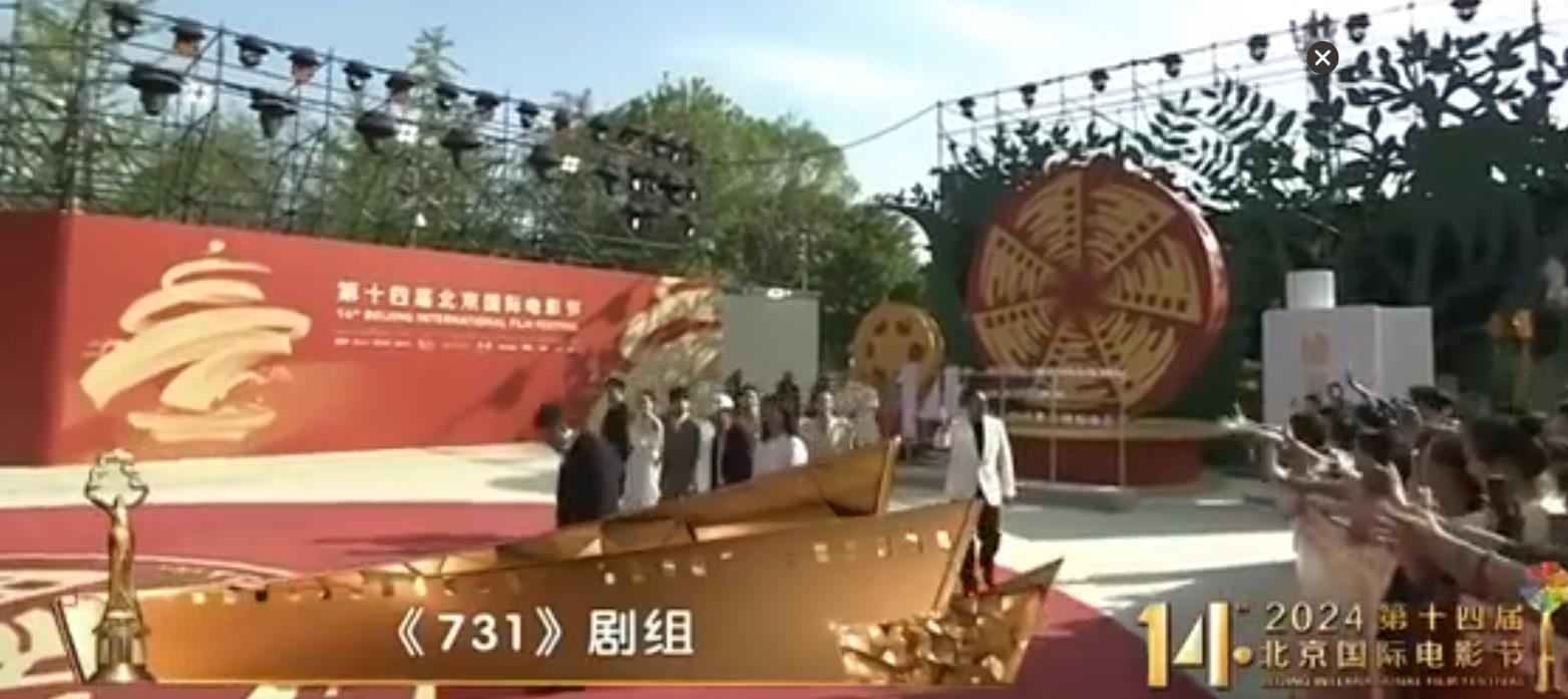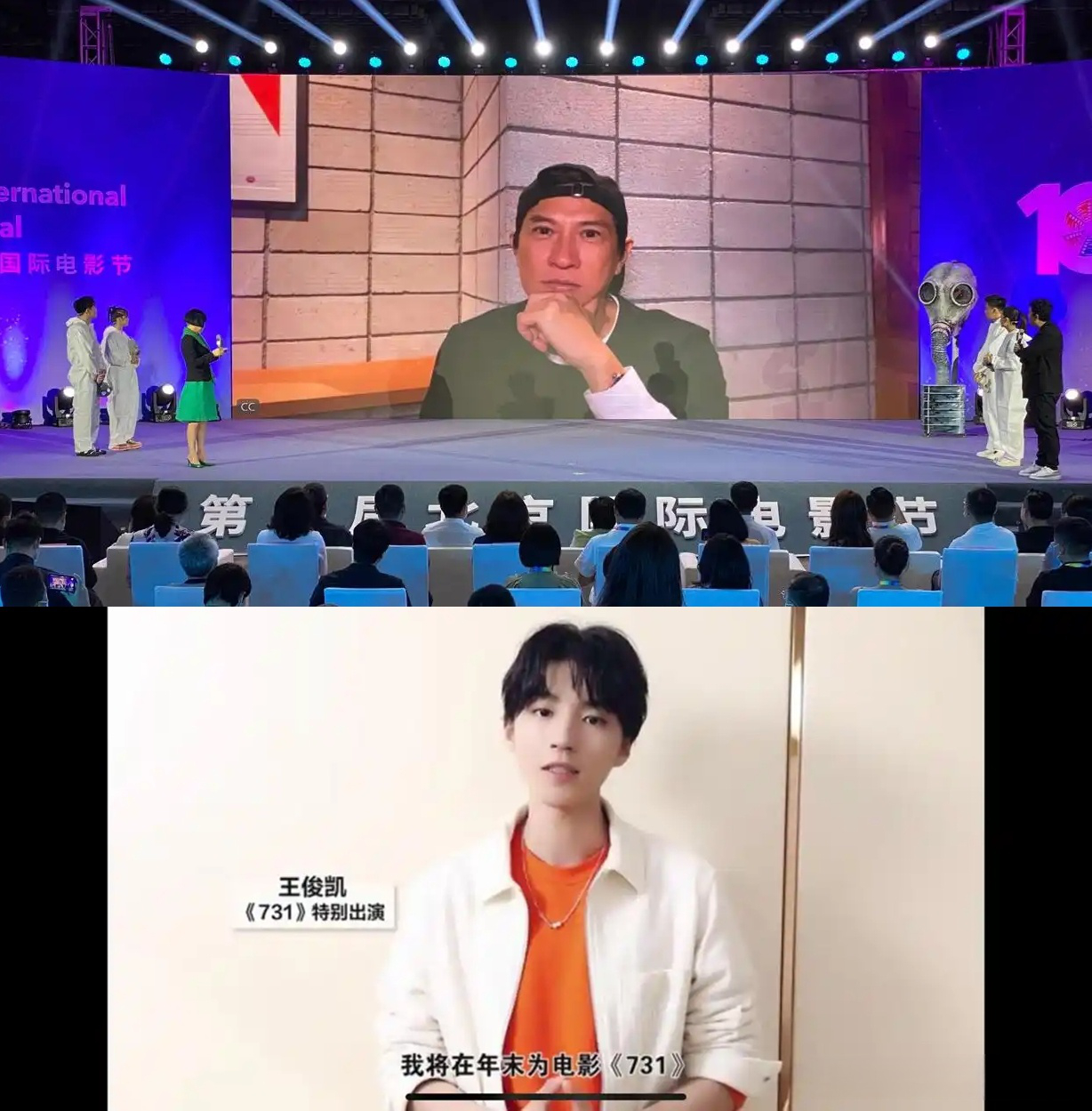 在2020年《731》開拍前的一場發佈會上,主創身着防化服和防毒面具亮相