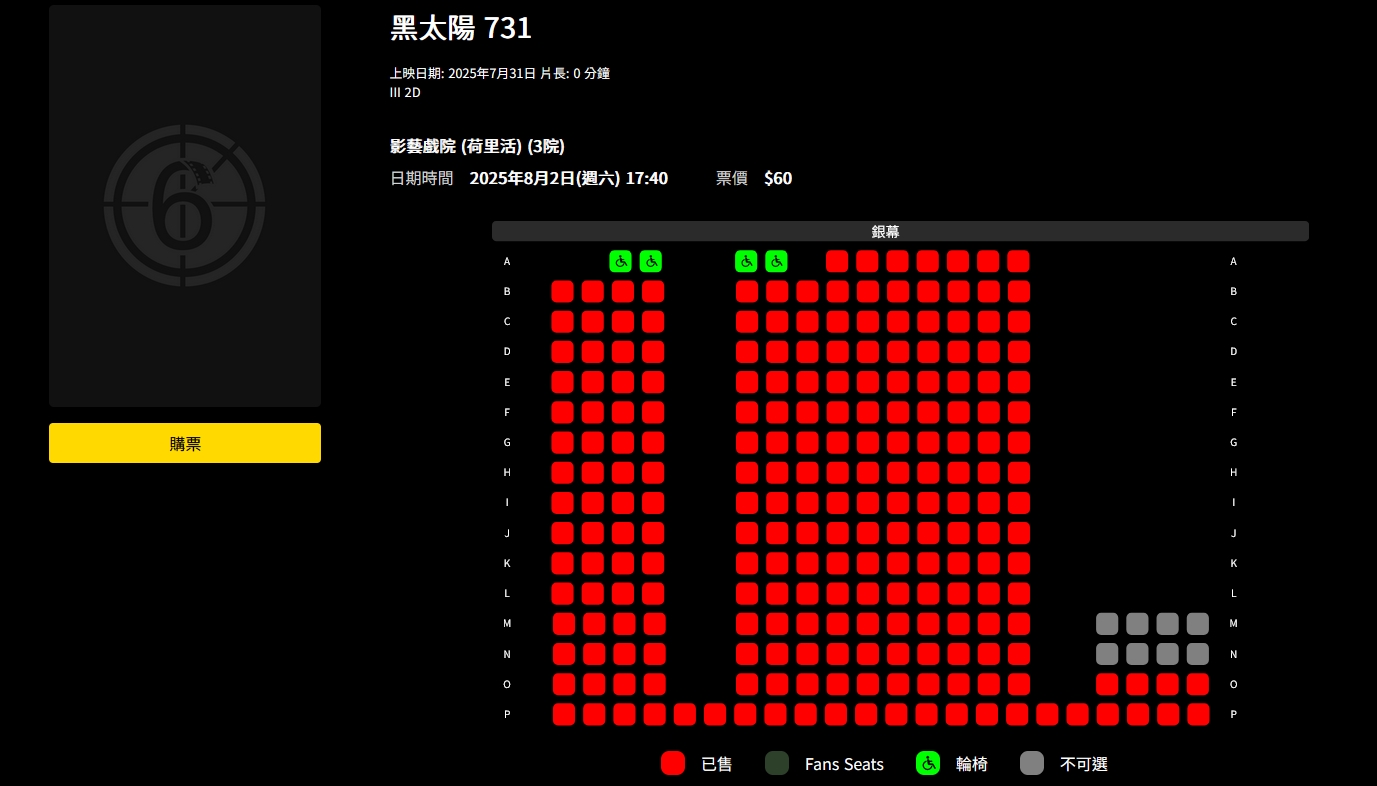 香港影院重映《黑太陽:731》滿座,隨後影院方更換了更大的放映廳