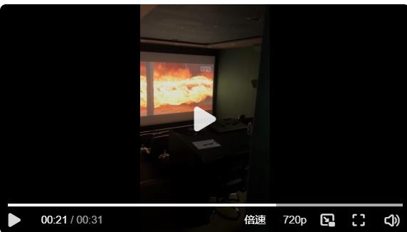 趙林山導演在2024年7月曾在自己的微博裏發佈自己拍攝的“投資方正在看片”短視頻,通過微微打開的門縫,我們可以看到大銀幕裏火焰熊熊燃燒的電影畫面。