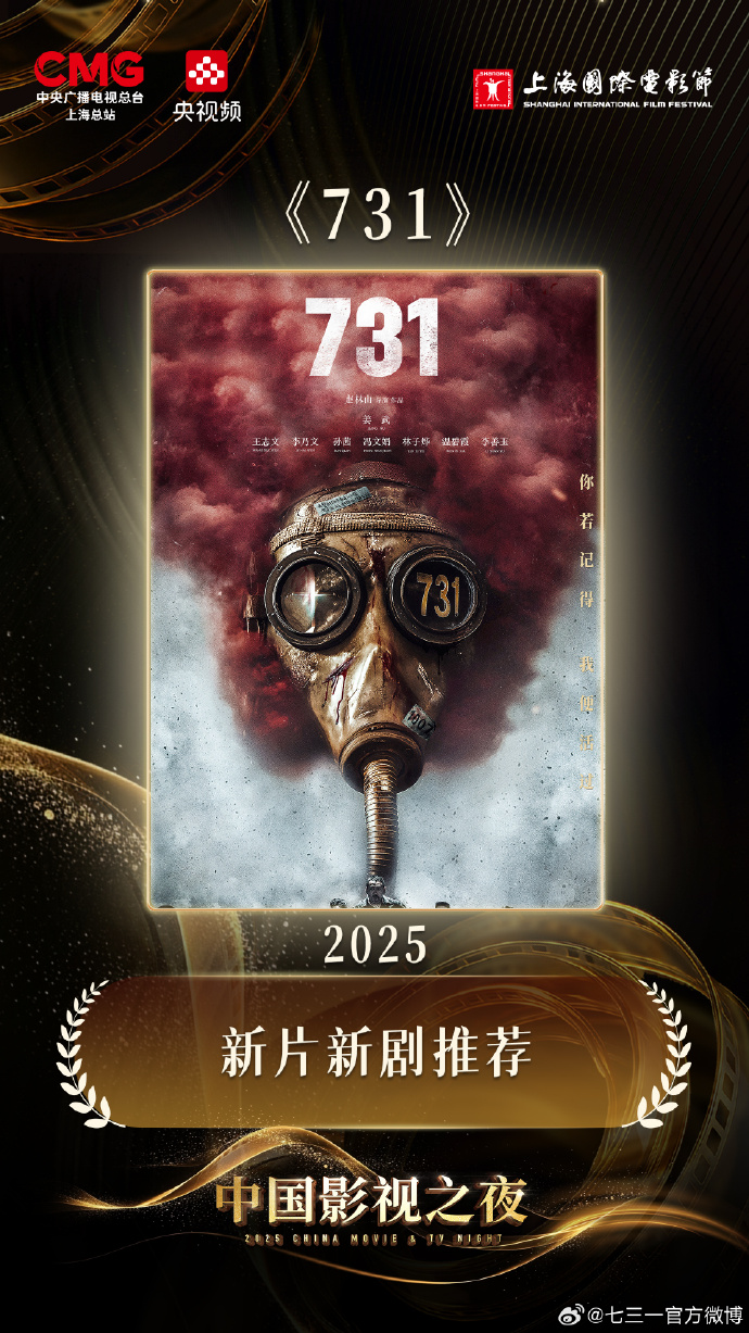 在今年6月的上海電影節上,《731》導演趙林山攜製片人以及主演姜武、孫茜等曾亮相“中國電影之夜”活動,並獲得“2025年度新片推薦”。長影集團有限公司董事長莊嚴在電影之夜光影會客廳節目介紹該片時表示:“還有一個多月,電影《731》就正式同觀眾見面了,希望通過這部電影讓全世界觀眾深入瞭解這段歷史、以史為鑑。”一個多月之後恰好是7月底,種種跡象表明7月31日將會是電影上映的很好的日期。