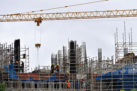 2022年7月1日,福建福州,建設中的樓盤。中新社 張斌 攝