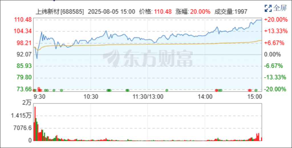 年內漲幅超1500%,上緯新材復牌首日再度20cm漲停