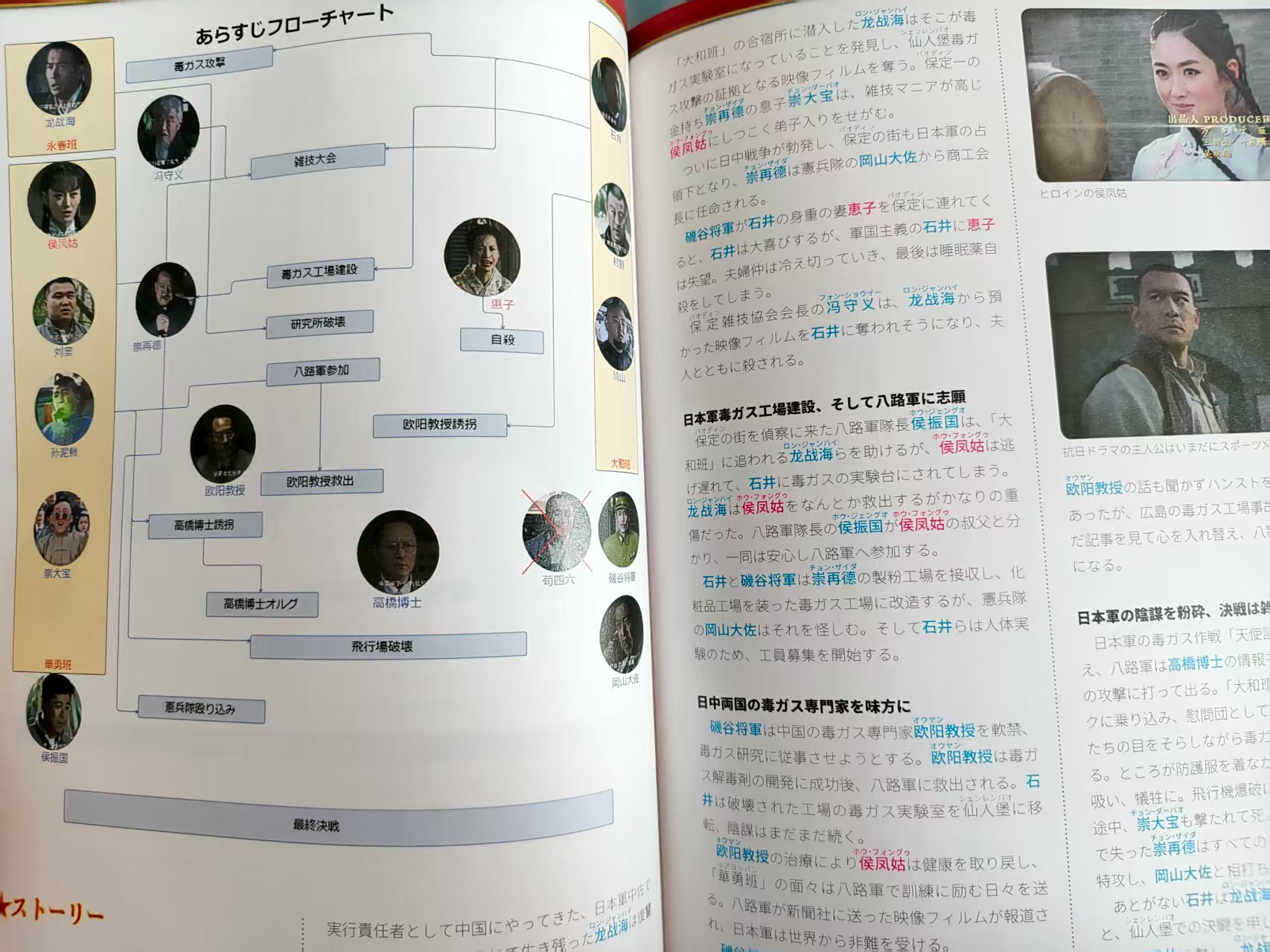 從封面腰封就能看出,作者直言這些劇完全無視時代背景,稱不上是反日宣傳,簡直就是段子合集。對於書中提到的每一部劇,作者都製作了詳細的人物角色關係表和劇情走向圖。介紹完劇情後,作者會截取劇中的槽點鏡頭,並配上自己的解説。