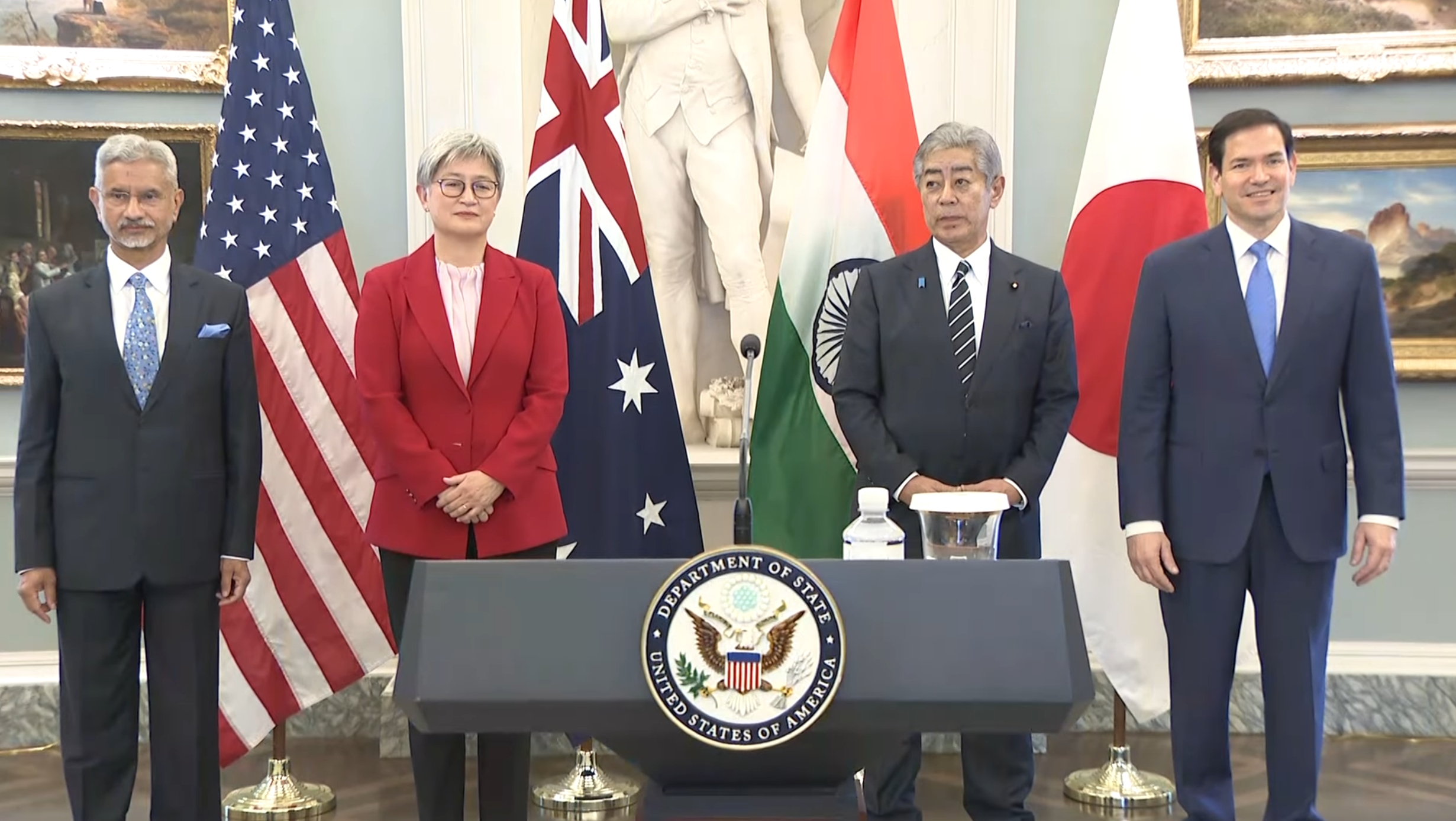 當地時間7月1日,美日澳印外長聚首華盛頓舉行“四方安全對話”(QUAD)會議。美國國務院視頻截圖