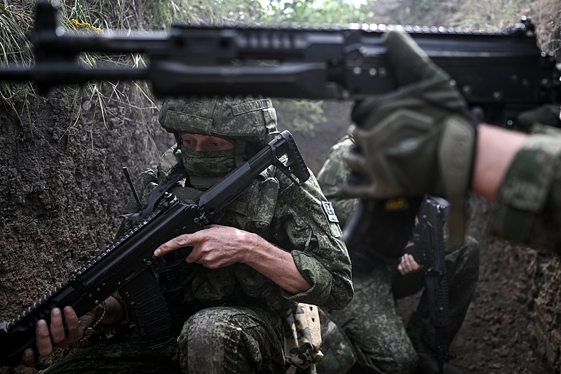 當地時間8月3日,庫爾斯克地區,俄羅斯“北方”部隊第34獨立山地摩托化步兵旅的突擊隊士兵參加戰鬥訓練。 視覺中國