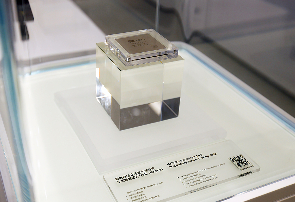 4月25日,上海,2025上海車展NIO蔚來汽車展台,蔚來自研業界首個車規級智駕芯片神璣NX9031。視覺中國