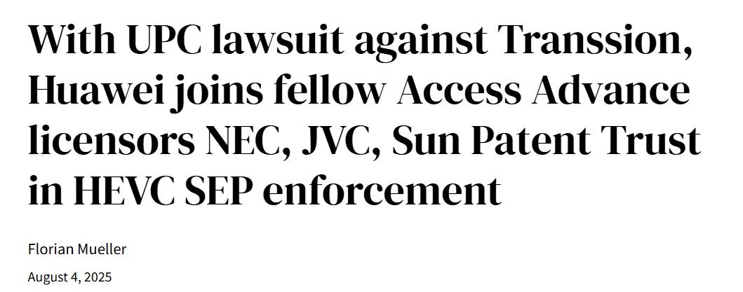 截至目前,已有四家Access Advance專利池許可方對傳音發起高效視頻編碼(HEVC)專利維權。除了華為,傳音還因HEVC專利在UPC及巴西遭NEC、JVC及Sun Patent Trust起訴。