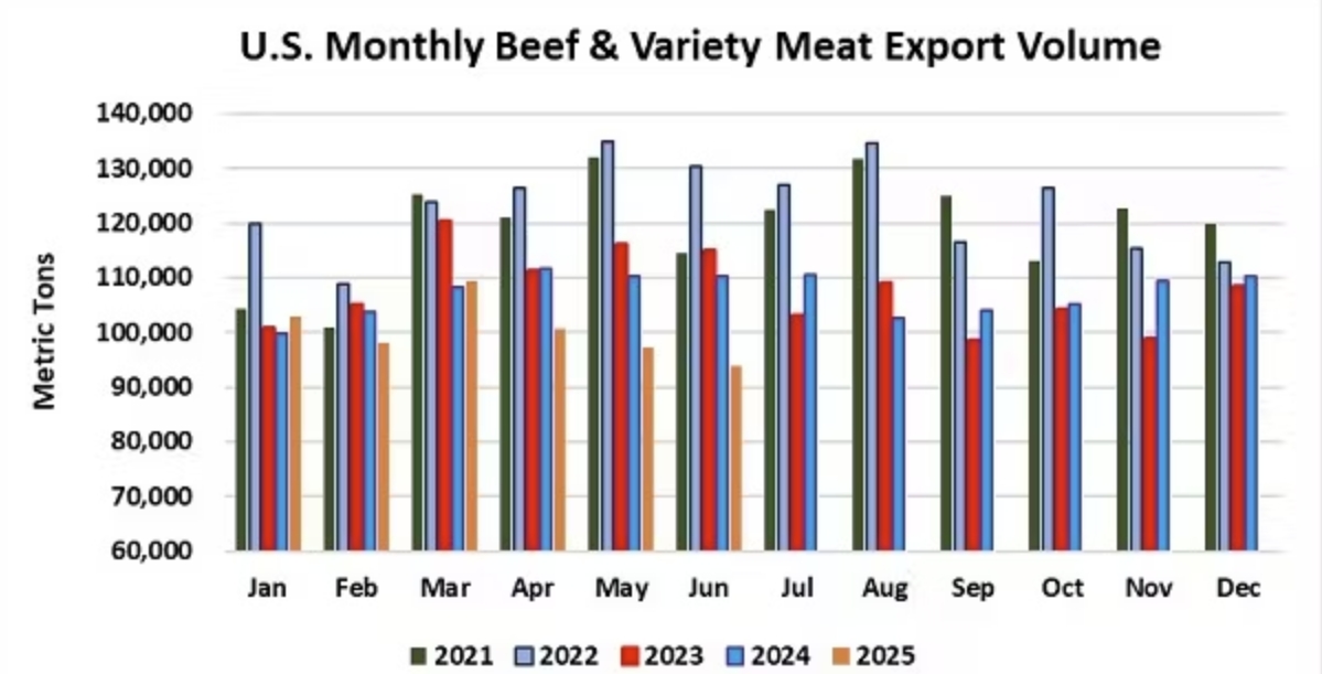 不過,彭博社援引美國農業部數據稱,受到美國特朗普政府挑起貿易摩擦的影響,6月美國對華牛肉出口量跌至五年來同期最低水平。