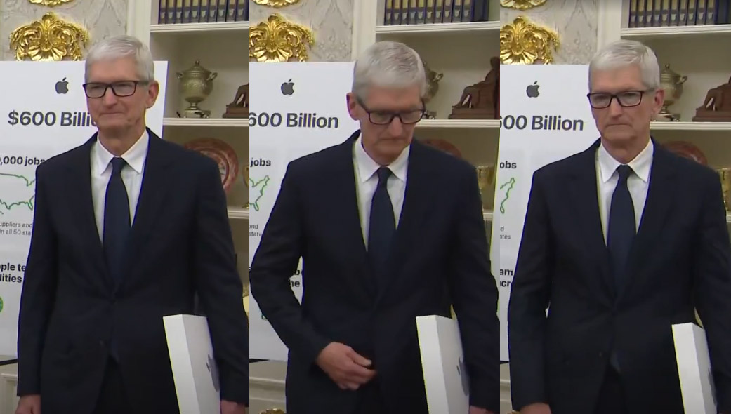 他原本是與特朗普一起開記者會,介紹蘋果許諾的、在美國的大筆投資。