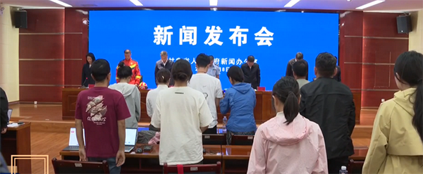 甘肅蘭州榆中縣山洪災害新聞發佈會現場為遇難者默哀