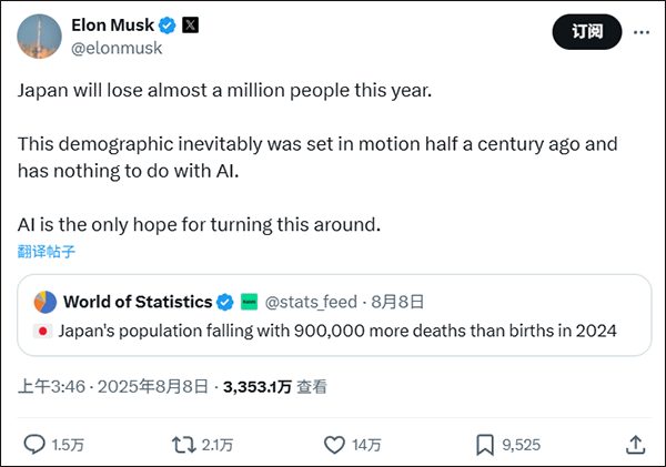 他表示,這場當前的日本人口危機已在過去50年中逐步形成,並“與 AI 毫無關係”,但他認為,AI 是扭轉這一趨勢的“唯一希望”。