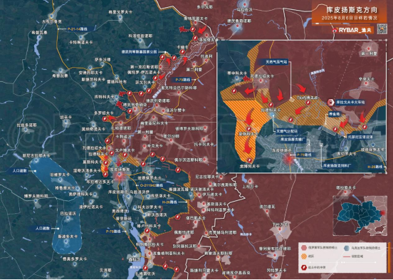 同樣的事情也發生在庫皮揚斯克附近。俄軍在庫皮揚斯克市北部取得了新進展,並沿憲法街和庫皮揚斯克保衞者街推進至“斯巴達克”體育場和列寧公園附近。最離譜的事情發生在庫皮揚斯克西側的索博利夫卡——在那裏,一個勇敢的西部軍區士兵走過了6.5公里,在一個沒有烏克蘭士兵的地方“打卡”。