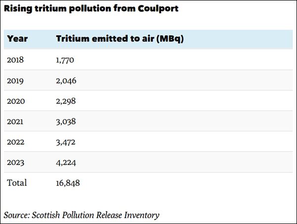 “The Ferret”網站去年年底曾報道稱,庫爾波特的氚排放量在6年內翻了一番,2018年至2023年放射性物質含量從1770兆貝克勒爾(MBq)增加至4224兆貝克勒爾。
