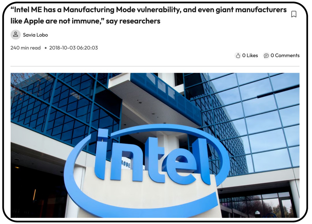 “追蹤定位”功能與英特爾管理引擎中的遠程識別功能類似。2018年,這一功能引發了計算機“後門”安全性的討論