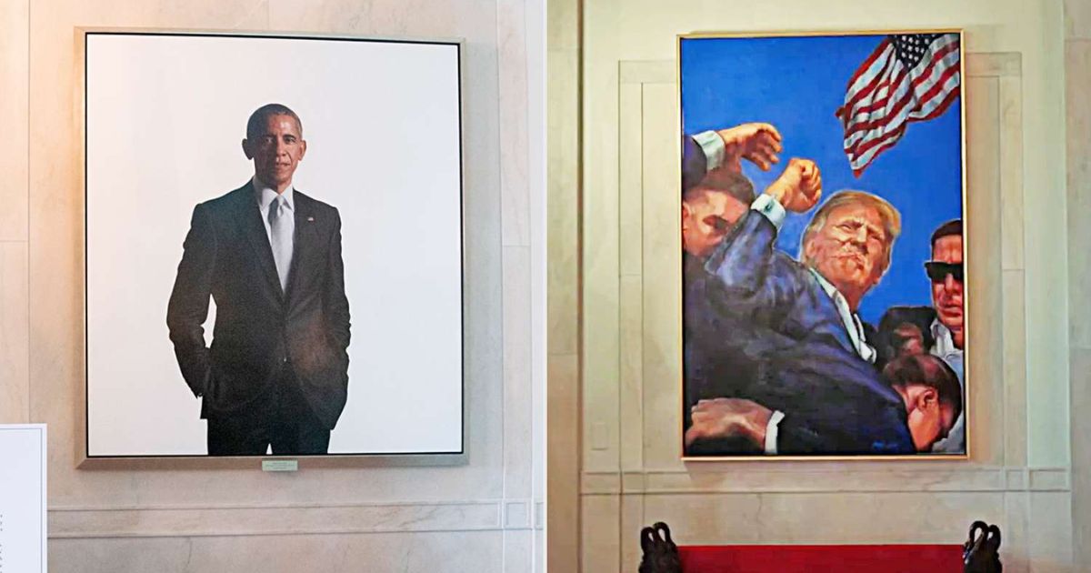 今年4月,原本懸掛奧巴馬肖像的位置被換上了特朗普遇刺的相關畫作。 X網站