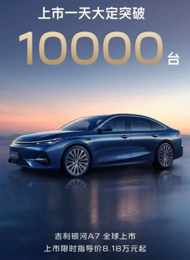 而銀河A7的入局,則是吉利在保留帝豪等燃油車口碑的前提下,向同級混動市場的持續試探,從市場層面來看,吉利將有望通過對於自身燃油車用户的轉化,來實現銷量的快速上升。同時,銀河品牌7月突破9.5萬輛的銷量,也為新車提供了堅實的品牌背書。據銀河發佈的最新信息,新車上市首日,銀河A7的訂單量已經突破1萬輛。