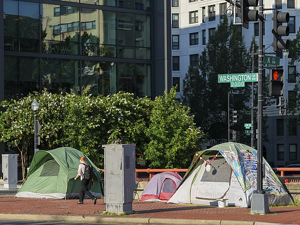 當地時間8月4日,美國華盛頓特區街頭的露宿者 視覺中國