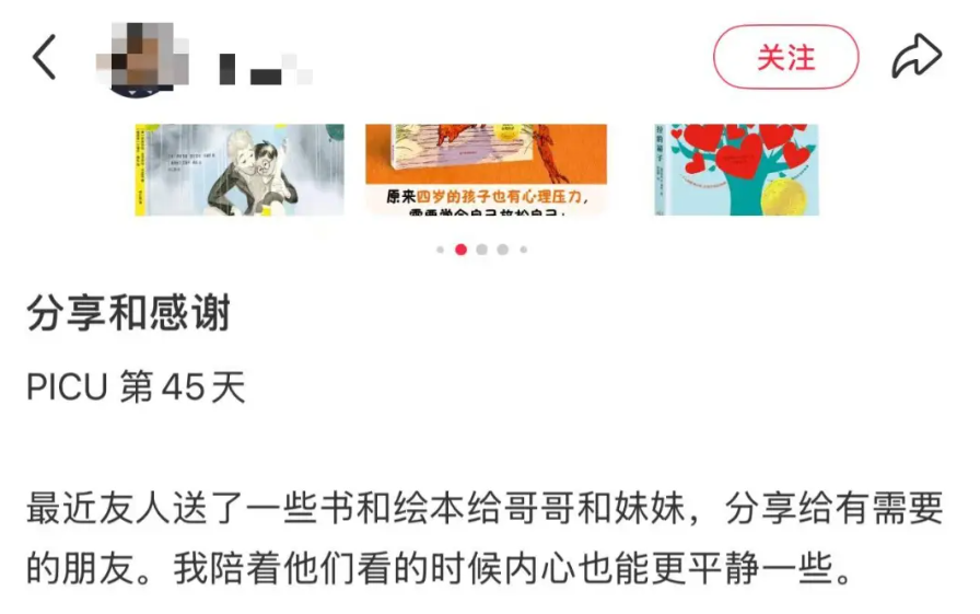4天前,該博主發佈消息稱,孩子已在PICU待了45天。