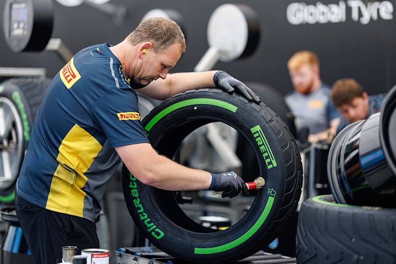 當地時間2025年7月24日,2025年F1比利時大獎賽,各支車隊使用的倍耐力輪胎。 視覺中國