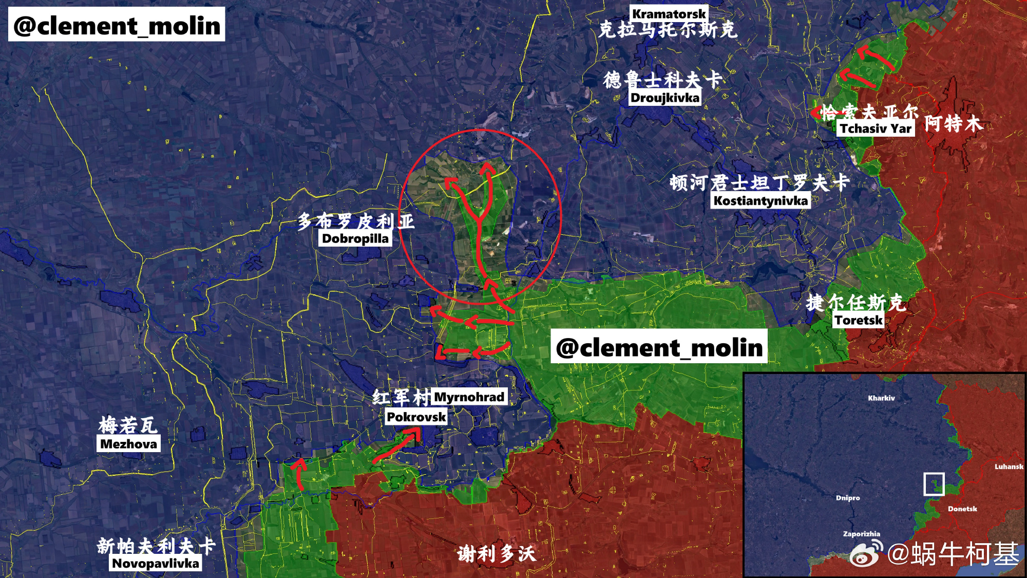 俄軍大規模突破,奪取多個村莊,並切斷了烏軍連接紅軍村的T0504通路微博@蝸牛柯基