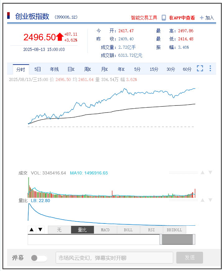 8月13日,A股三大指數今日集體上漲,滬指八連陽創2021年12月以來新高。截止收盤,滬指漲0.48%,深證成指漲1.76%,創業板指漲3.62%。