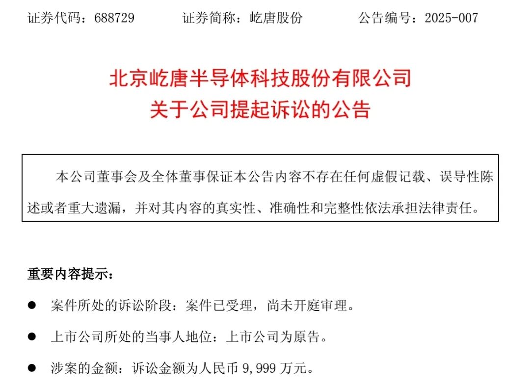公告還表示,截至本公告披露日,該案件已立案,尚未開庭審理。屹唐股份表示,本次訴訟不會對公司經營方面產生重大不利影響,也不會影響公司正常生產經營。最終實際影響將取決於法院生效判決結果。