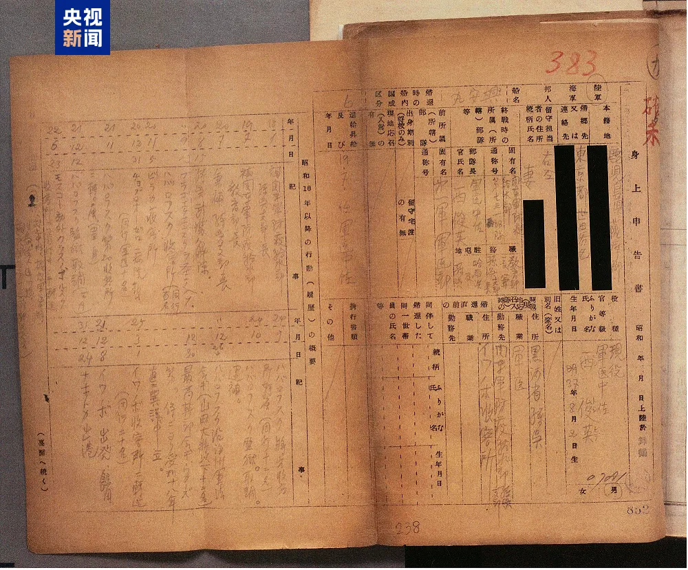 本次公佈的侵華日軍第七三一部隊《身上申告書》,是記錄七三一部隊隊員以個人身份返回日本復員所需填寫的制式文件,該檔案文件是研究人員於2022年5月在日本國立公文書館發現。