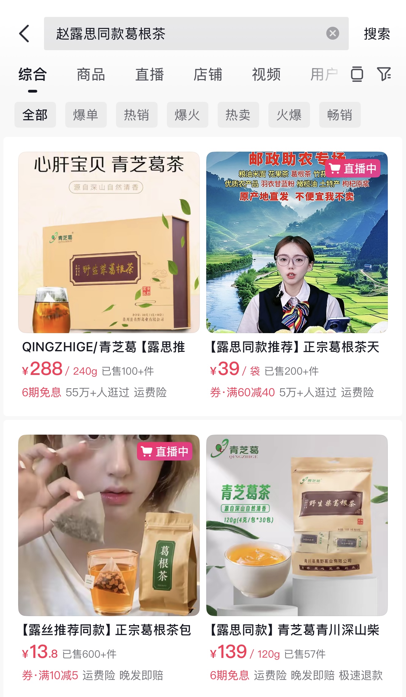 熱搜在第四天跌出前十,葛根茶GMV最終定格在2300萬元,#趙露思同款#的話題瀏覽量停在3.8億。