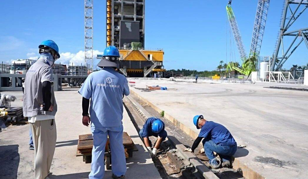 2024年9月,超強颱風2411摩羯以C4強度登陸文昌翁田,超過68米/秒的狂風破壞了101和201發射塔迴轉平台上的部分百葉窗和通風結構。這次颱風還破壞了很多工程設備,根據一些已經被髮布者刪除的視頻截圖顯示,長征十號運載火箭總裝廠房大樓附近的工棚被全部吹爛,可能進一步導致了總裝廠房大樓進度的延遲。2024年下半年開始,長征十號發射場施工工作開始加速進行,發射塔的建設速度一度達到每4-5天一層樓,硬是在2025年5月中下旬完成了塔架核心筒封頂,目前發射塔架鋼結構也已經封頂,正在開展設備安裝工作。
