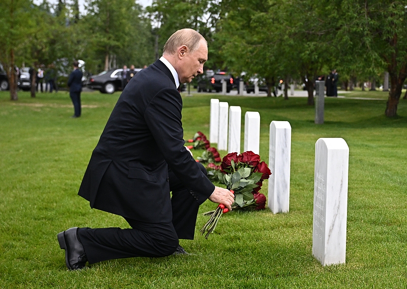 美國阿拉斯加州安克雷奇附近,俄羅斯總統普京在理查森堡國家公墓向二戰期間根據租借法案在阿拉斯加訓練或運送美國製造飛機至東線時犧牲的蘇聯飛行員墓地獻花。