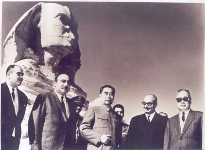 1963年,周恩來總理訪問埃及時參觀獅身人面像。
