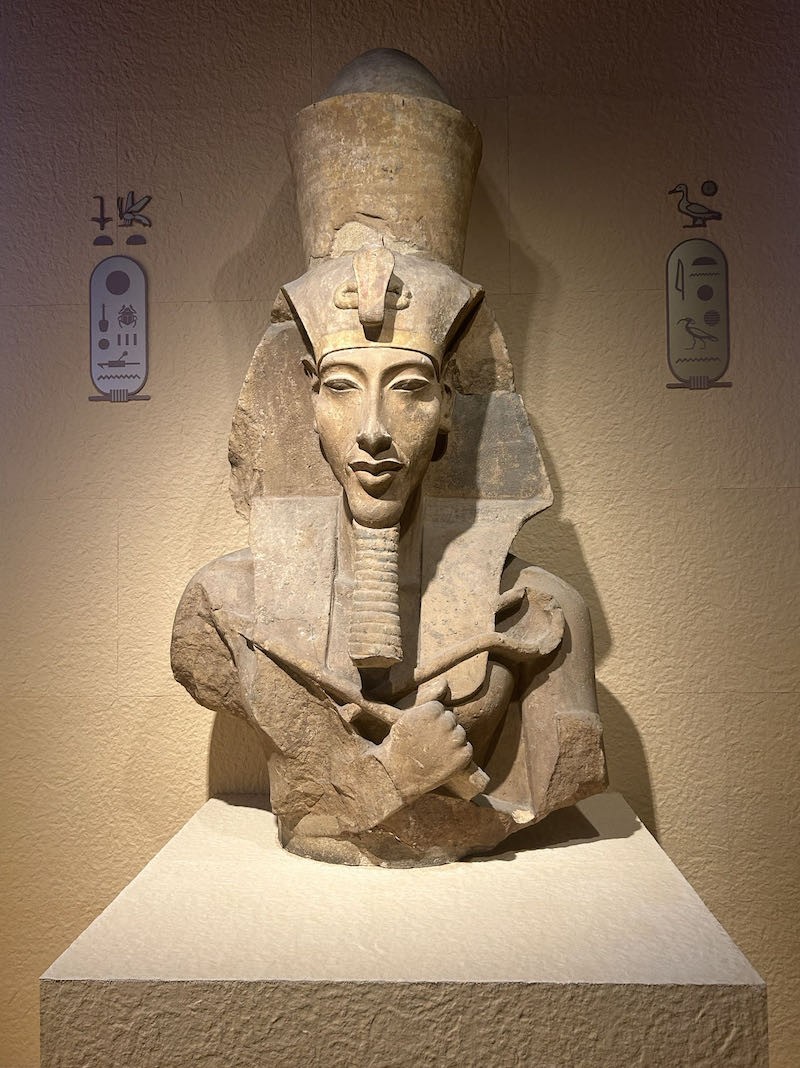 最有名的是大英博物館的鎮館之寶——羅塞塔石碑,通過石碑上的文字,1822年商博良破譯了古埃及文。第二有名的是古埃及著名法老阿肯那頓(埃赫那吞)的王后納芙蒂蒂的半身像,目前收藏在柏林新博物館,埃及一直想要拿回來,把她放在國王雕像的旁邊,跟她的六個女兒一起放在一個展廳,是一個完整的家族。但是柏林博物館一直不同意,他們説如果把納芙蒂蒂半身像還給你們,博物館第二天就要關門。