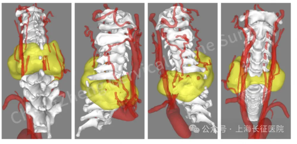 雪上加霜的是,骨折脱位區域形成巨大血腫,雙側椎動脈均因損傷而閉塞,導致患者血壓如同過山車般頻繁驟降至約50mmHg的危險低水平,不得不依賴大劑量血管活性藥物勉強維持循環。患者時刻遊走在災難性大出血導致休克、或椎動脈損傷繼發致命性腦梗死的邊緣。“手術枱上可能下不來,但放棄手術則生機渺茫”,面對這前所未有的外科禁區挑戰,患者家屬將全部希望與信任託付給了上海長征醫院。