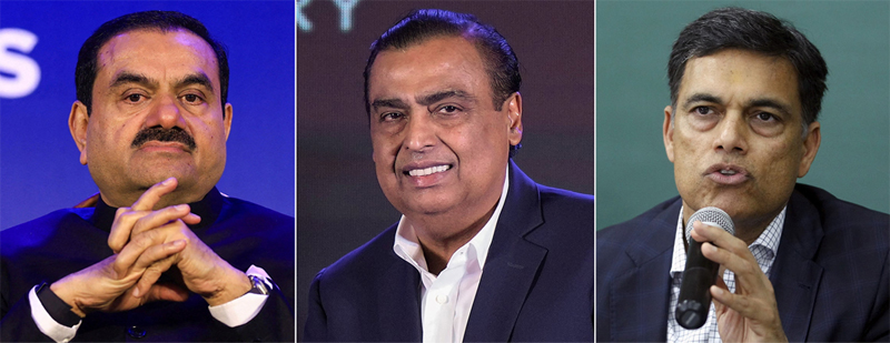 從左至右:印度富豪阿達尼、安巴尼、金達爾 資料圖