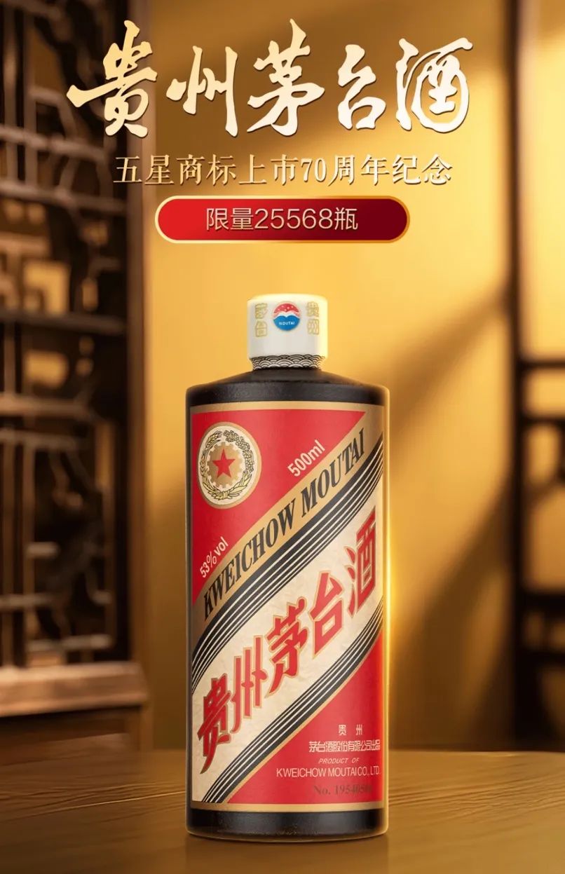 8月8日,貴州茅台推出售價高達7000元的70週年五星茅台酒,該產品復刻了1954年老版茅台酒酒瓶,限量25568瓶,每一瓶均印刻專屬身份編碼。