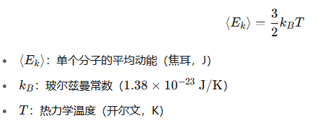 在此需要補充一點,那就是根據分子運動理論,理想氣體中,每個粒子的平均動能與温度的關係是:
