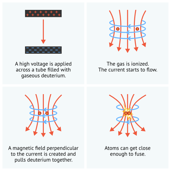 第二條路線是Z-箍縮路線,一種利用強脈衝電流通過等離子體本身所產生的磁場,把等離子體束縛並徑向壓縮到高温高密狀態,以實現核聚變的物理方法。這一路線的代表是美國桑迪亞國家實驗室的Z Pulsed Power Facility、中國的聚龍一號等。