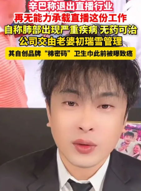 快手頭部主播辛巴18日晚哽咽宣佈,因肺部嚴重疾病需大量藥物治療,正式退出網絡。他表示,公司將交由妻子初瑞雪管理,擁有超1億粉絲的賬號也將移交團隊運營。粉絲紛紛留言“挽留”,網友則議論紛紛:這是真退網,還是又一場炒作?熟悉辛巴的人並不陌生,這已是他的第五次“退網”宣言。從假燕窩風波到與平台和同行的公開爭鬥,辛巴的直播生涯如過山車般跌宕,充滿了流量神話與爭議漩渦。