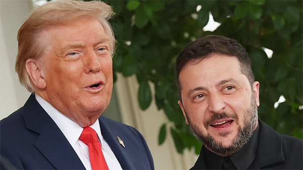 **“**特朗普和澤連斯基對着一張地圖進行討論”