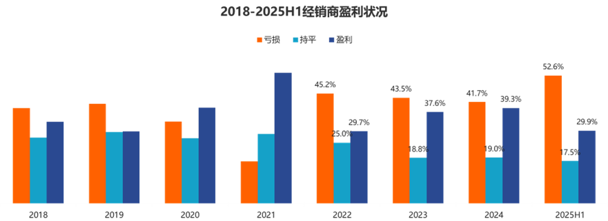 2018-2025上半年經銷商盈利情況 中國汽車流通協會
