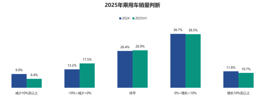 展望2025年,經銷商對總體趨勢的判斷為微增長或持平,但對於增長的判斷不及去年年底的預期:認為全年銷量增長的經銷商佔比約為49%,而認為減少的經銷商佔比較2024年略有增加。