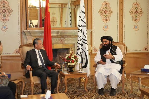 穆塔基歡迎王毅到訪,感謝中方為阿富汗反對外部干涉提供的寶貴支持,讚賞中方為維護地區和平與發展所作的重要貢獻。穆塔基表示,對華友好是阿富汗外交政策的基石,正是得益於中方幫助,阿方才能順利施政治國。面對當前國際地區形勢的重大變化,阿中深化合作正當其時。阿方願在平等、相互尊重基礎上深化兩國關係,加強各層級交往,建立經貿定期對話機制,推動務實合作取得更多互惠成果。阿方高度重視中方安全關切,決不允許任何人和任何勢力利用阿領土從事危害中國的活動,願同中方加強安全反恐合作,共同維護地區持久和平穩定。