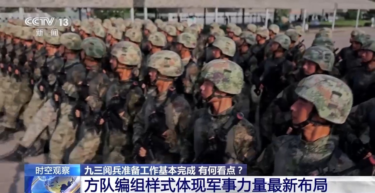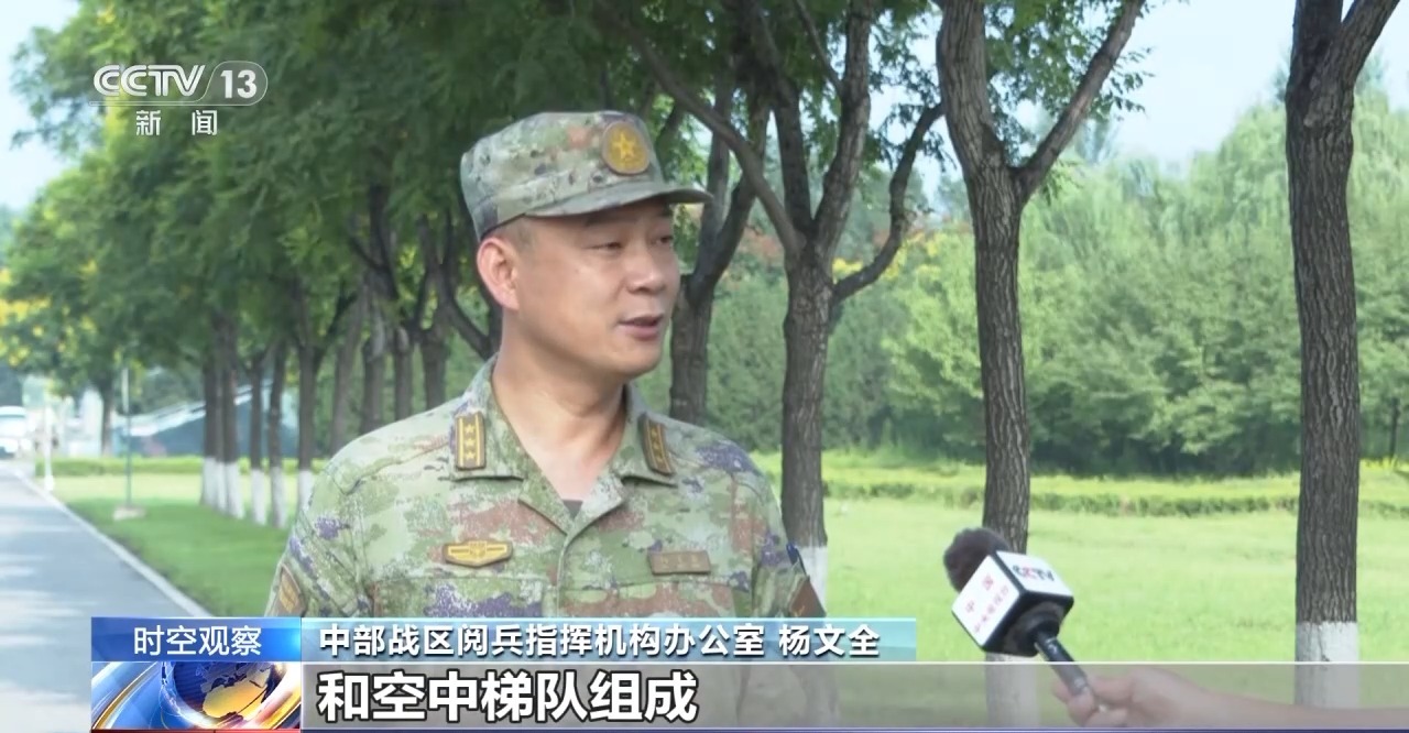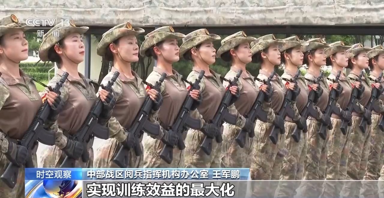 中部戰區閲兵指揮機構辦公室 王軍鵬:比如,我們在全軍範圍遴選抗戰英模單位參加受閲,以此彰顯對偉大抗戰精神的弘揚和紅色基因的傳承;再比如,裝備方隊、空中梯隊大多采取混合編組,一個方隊多型裝備、一個梯隊多個機種,展示的是我軍體系作戰能力、新域新質戰力和戰略威懾實力,也是我國武器裝備自主創新能力的集中體現。