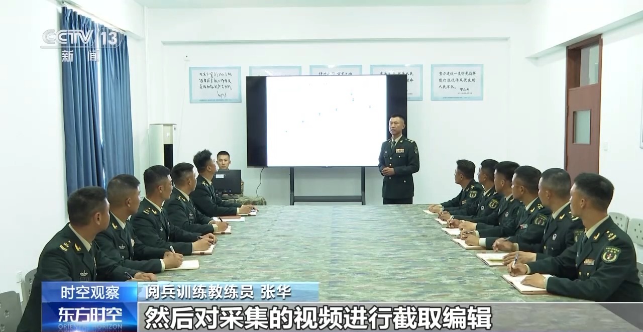 閲兵訓練教練員 張華:我們平時在訓練中,利用智能訓練輔助系統,可以即時捕捉單兵、單排面的訓練的姿態,然後對採集的視頻進行截取編輯、逐幀回放、統計分析,這樣就可以幫助教練員精準定位問題,並逐人會診,一人一案“定製式”調整訓練計劃,提升訓練的針對性、實效性。