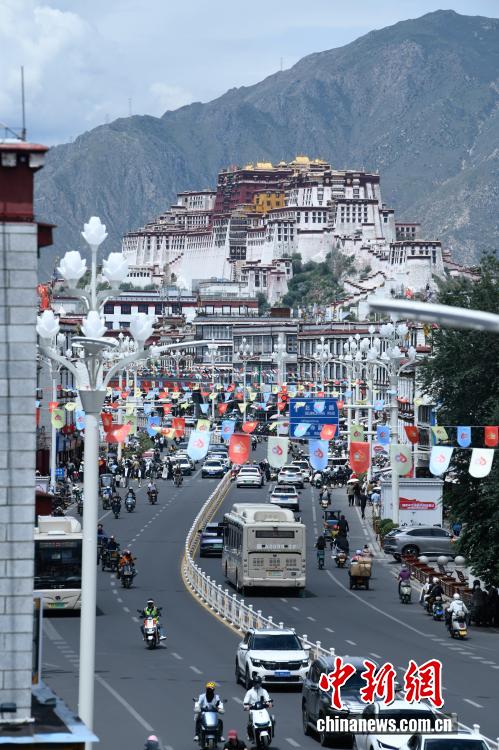西藏自治區成立60週年,拉薩街頭處處洋溢着喜慶氛圍。中新網