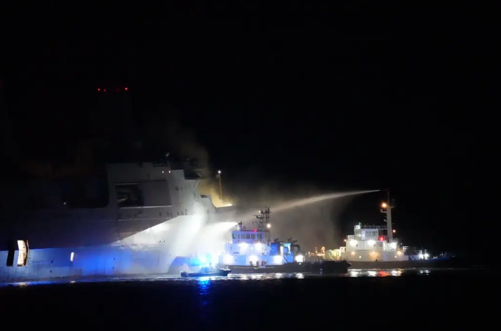 但沖繩縣中城海上保安部卻表示,截至21日上午8時,滅火行動已持續超15小時,且仍在進行中。日本海上自衞隊派出了2艘拖船參與滅火工作,沖繩縣中城海上保安部的巡邏船則負責信息收集等任務。