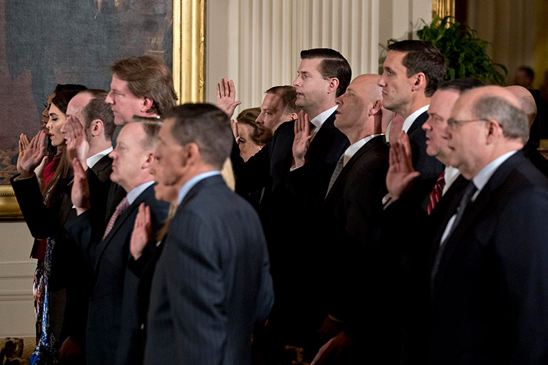 資料圖:特朗普第一任期的幕僚團隊宣誓就職 《華盛頓郵報》