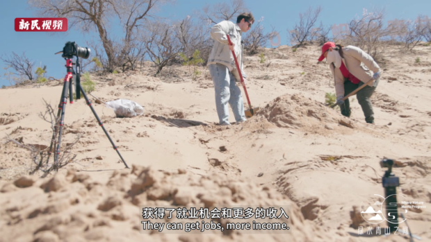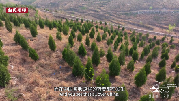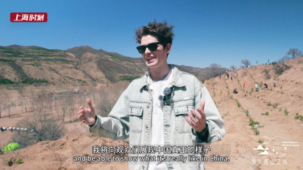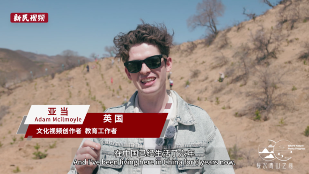 春種現場,荒山被樹苗鋪滿,人們彎腰挖坑、種苗、澆灌……亞當拿起鏟子,也成為其中一員。“昨天我們在豐寧花了一下午的時間,參觀了五年前種植的超過兩萬五千棵樹的森林。”他面對鏡頭娓娓道來:“植樹造林為當地居民提供了更多的就業機會和收入。種植的沙棘能製成飲料,穀物可以用作動物飼料。中國有句老話,‘前人栽樹,後人乘涼’。”