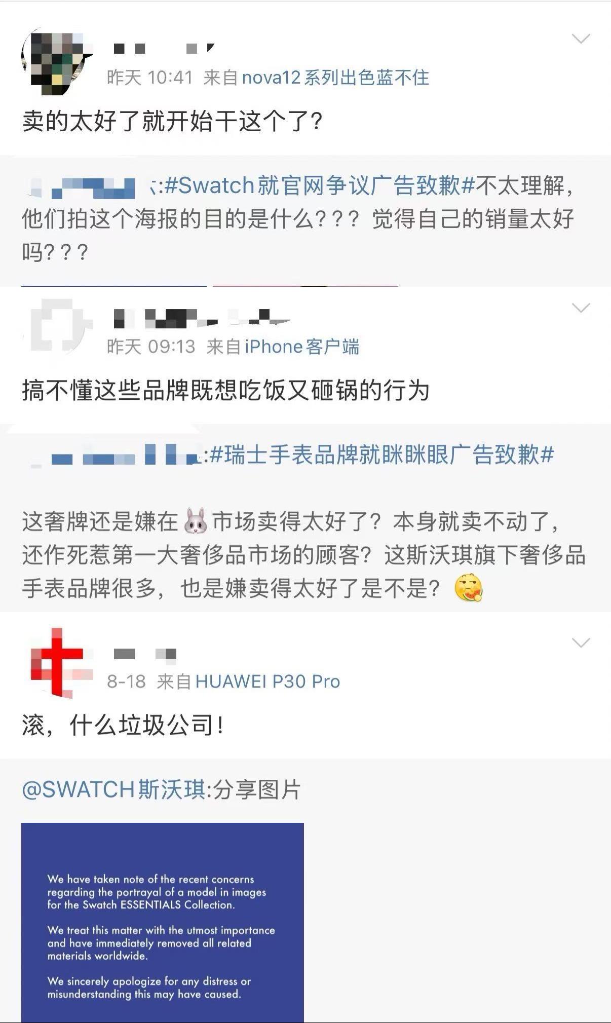 8月16日的道歉聲明發布後,斯沃琪中國官網迅速刪除了所有相關照片。但傷害已經造成了。在微博、小紅書、抖音等社交平台上,“抵制斯沃琪"的話題持續發酵。很多消費者表示,即使斯沃琪道歉了,也不會再購買其產品。